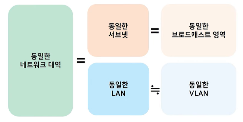개발자의 네트워크와 비개발자의 네트워크 대역, 인터넷 전화기의 네트워크 대역을 구분하여 사용하는 경우가 있는데, 이때 L2, L3 스위치와 라우터 등 여러 장비를 도입해서 구분하는 하드웨어 구분 방법과 VLAN이라는 논리망을 구분하는 소프트웨어 구분 방법이 존재한다.