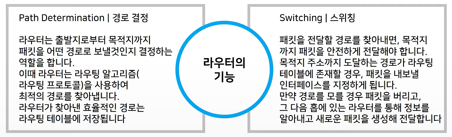 서로 다른 네트워크 간 통신을 가능하게 해주는 라우터는 통신을 위한 길을 찾아주는 경로 결정 역할과 스위칭 기능을 제공한다.