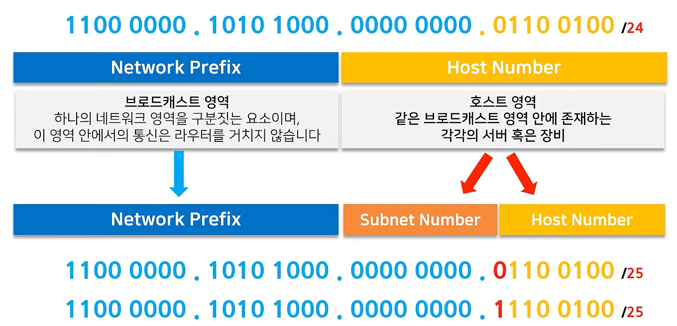 파란색 24개 숫자가 동일한 경우 같은 대역 대역을 의미 (이 부분을 네트워크 부분이라고 부른다.)