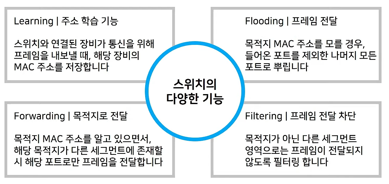 스위치는 다양한 기능을 갖고 있는데, 이 중 가장 대표적인 네 가지 기능을 알아본다.