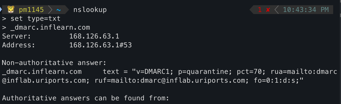 dmarc 레코드를 조회해 보는 방법은 아래와 같다.