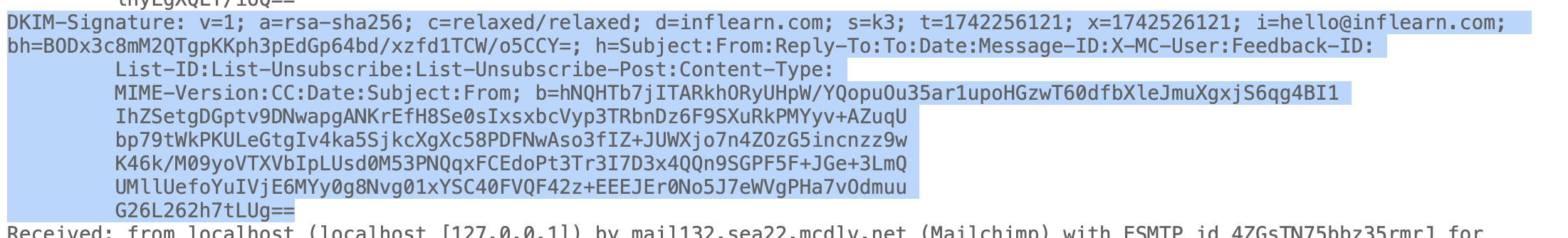 수신받은 메일 중 원문보기를 통해 보면 위와 같이 dkim 서명 내용과 selector등을 조회 해 올 수 있다.