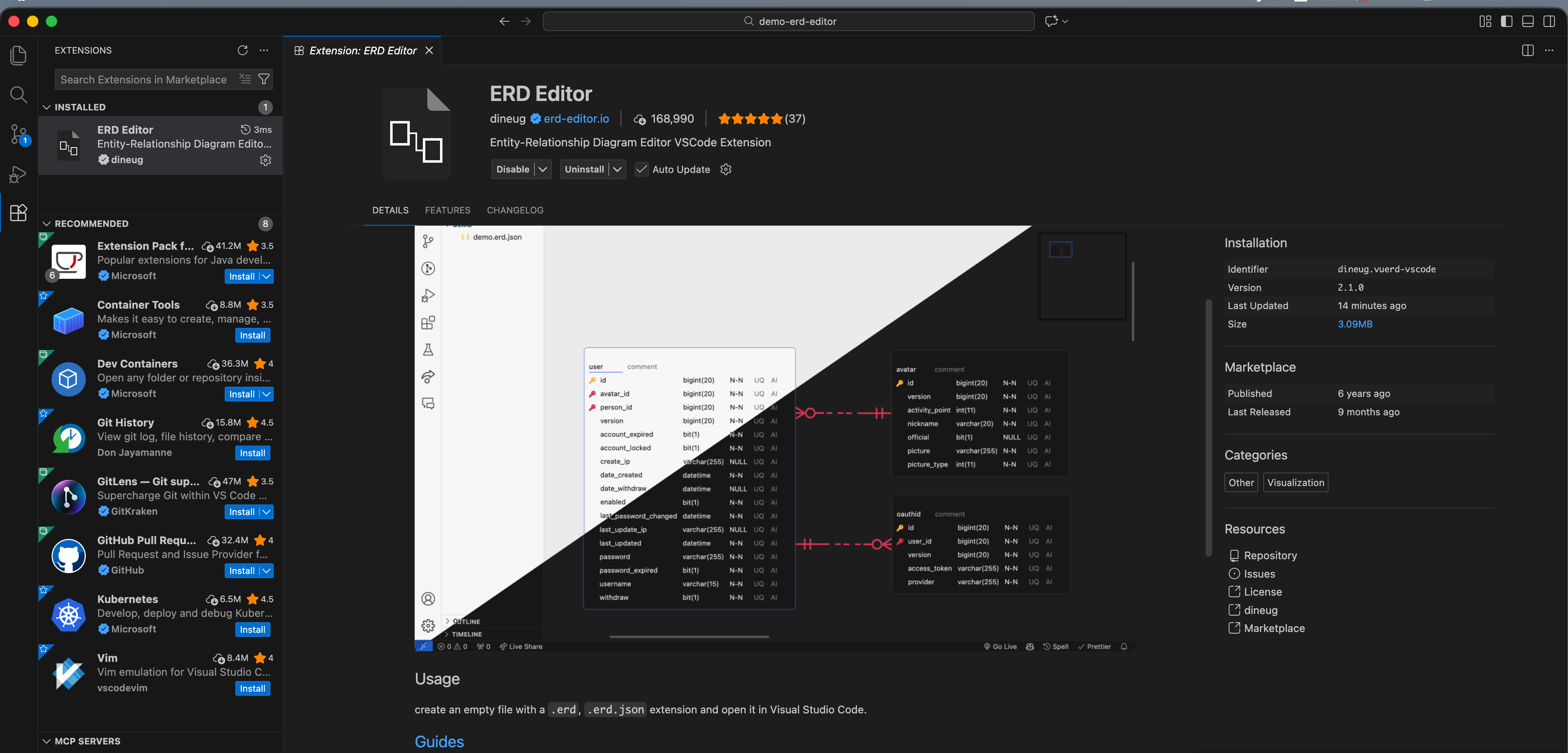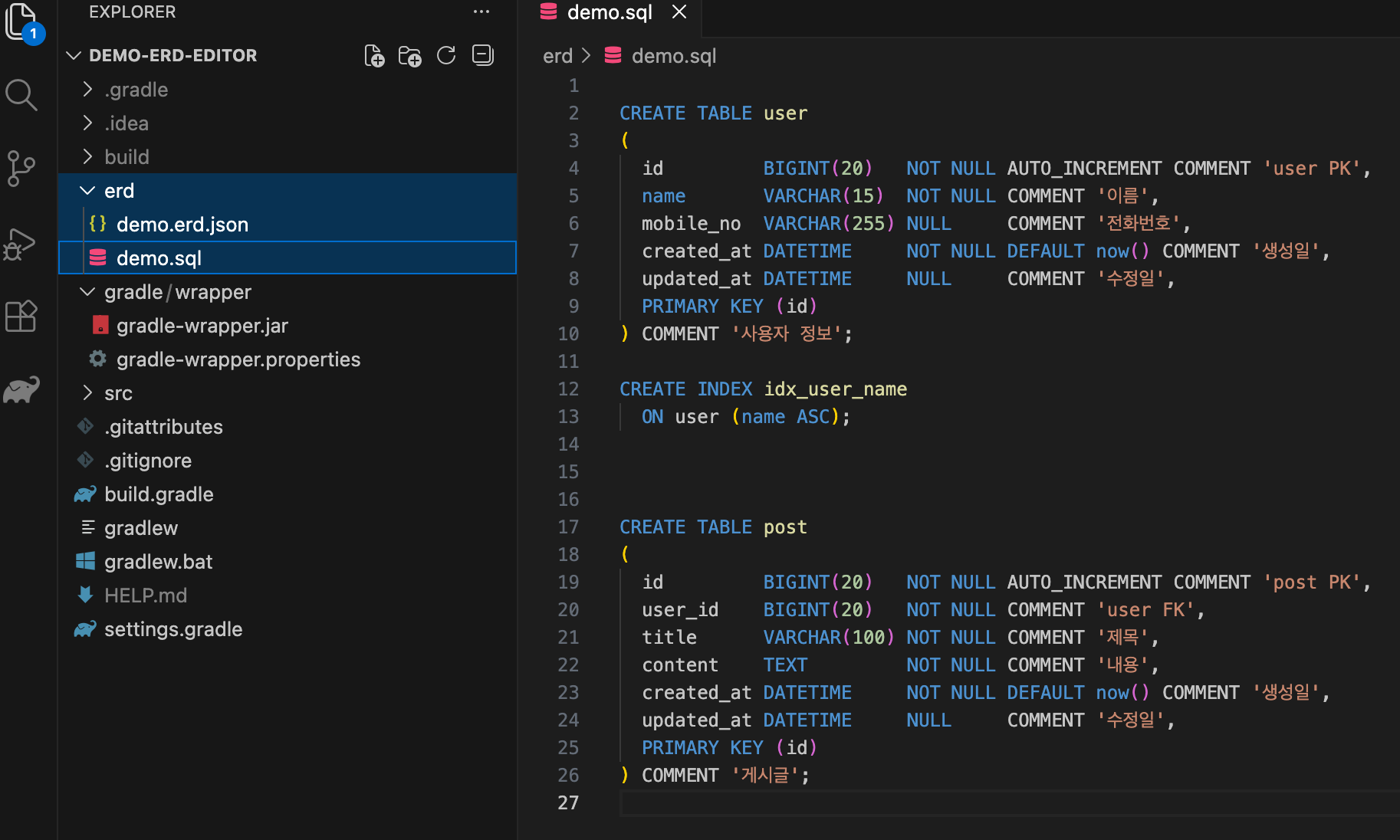 erd 와 sql 을 함께 수정하며 프로젝트 git으로 함께 관리할 수 있다.