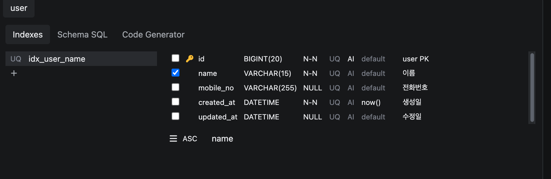 예시로 위처럼 index 또한 추가로 설정 가능하다.