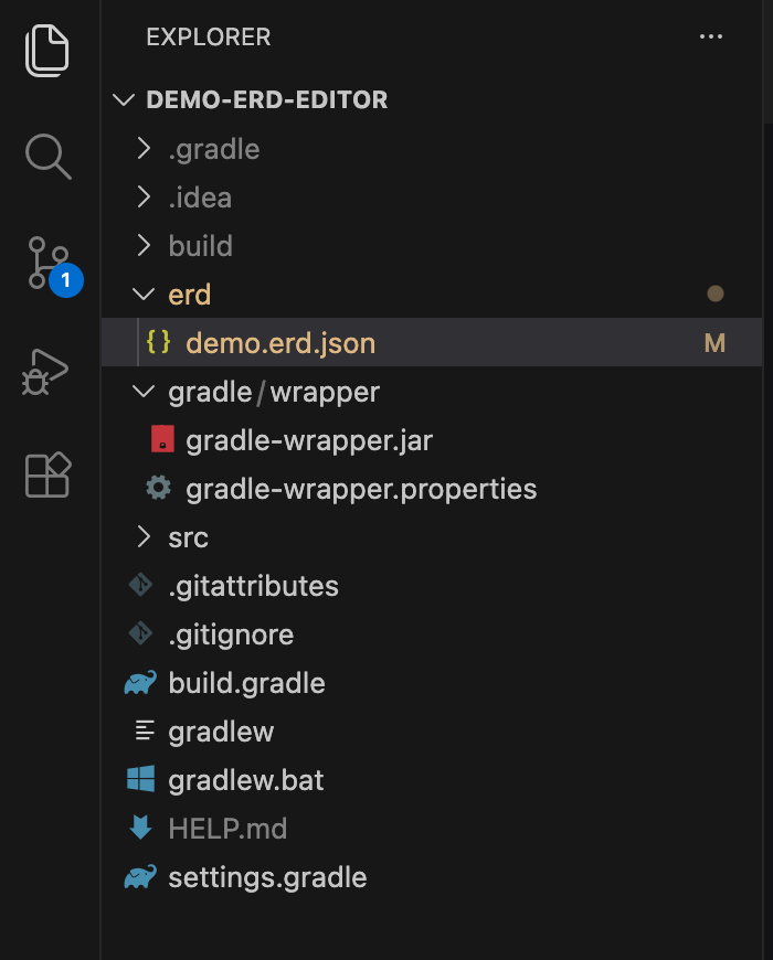 프로젝트 내 {파일명}.erd.json 명칭으로 파일을 하나 생성하면 ERD 파일 생성은 끝난다.