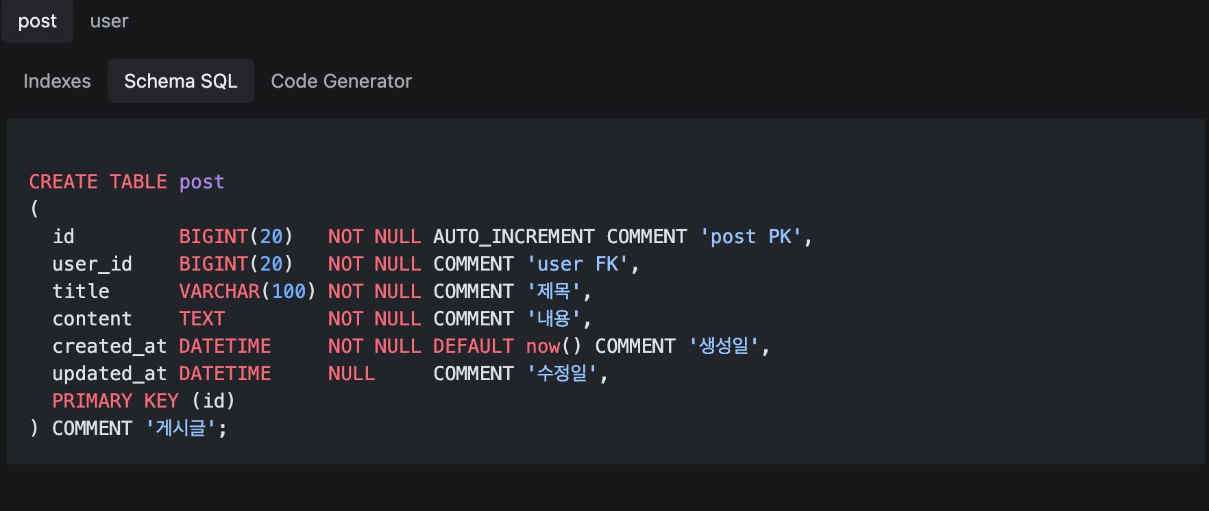 참고로 자동 생성되는 sql 에 물리적인 FK는 작성되지 않으니 필요한 경우 주의해야함.