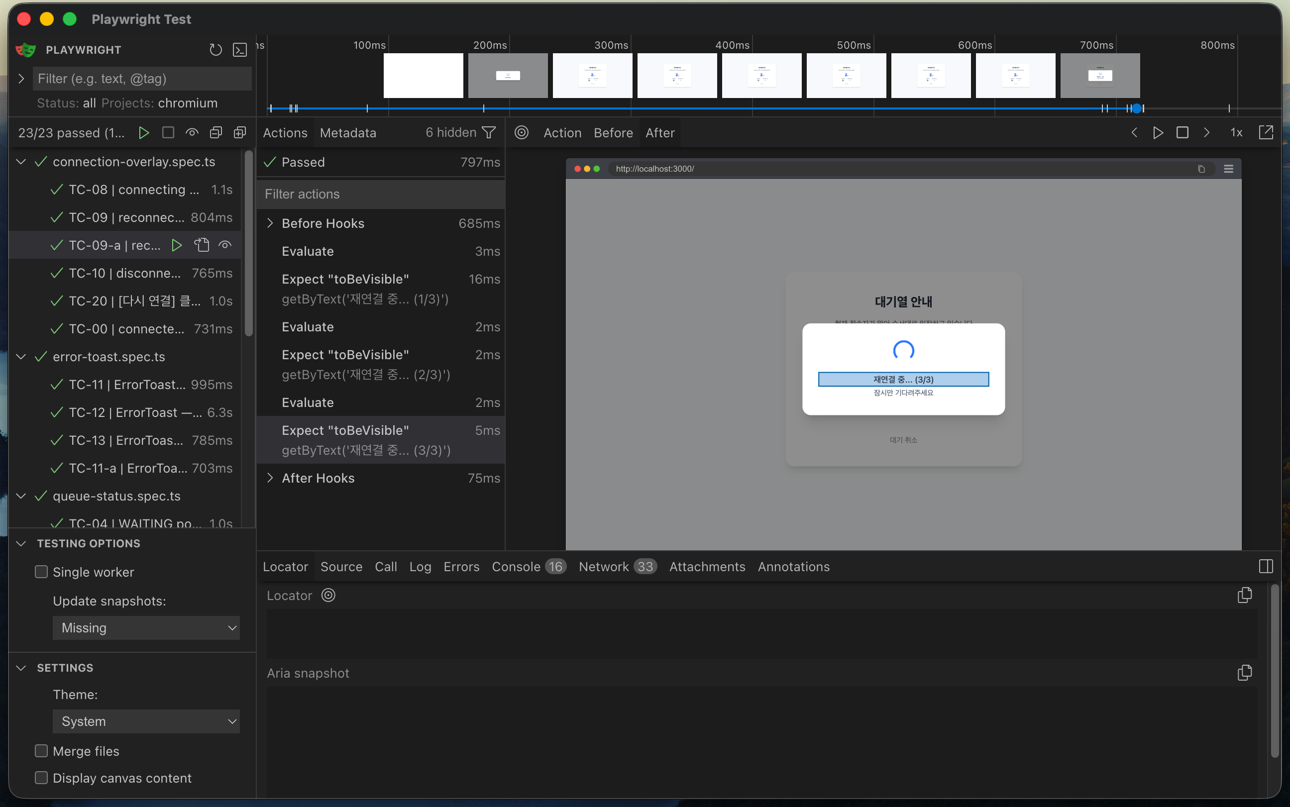 UI모드로 테스트를 실행하면 위와 같은 UI로 테스트케이스마다 확인이 가능하며