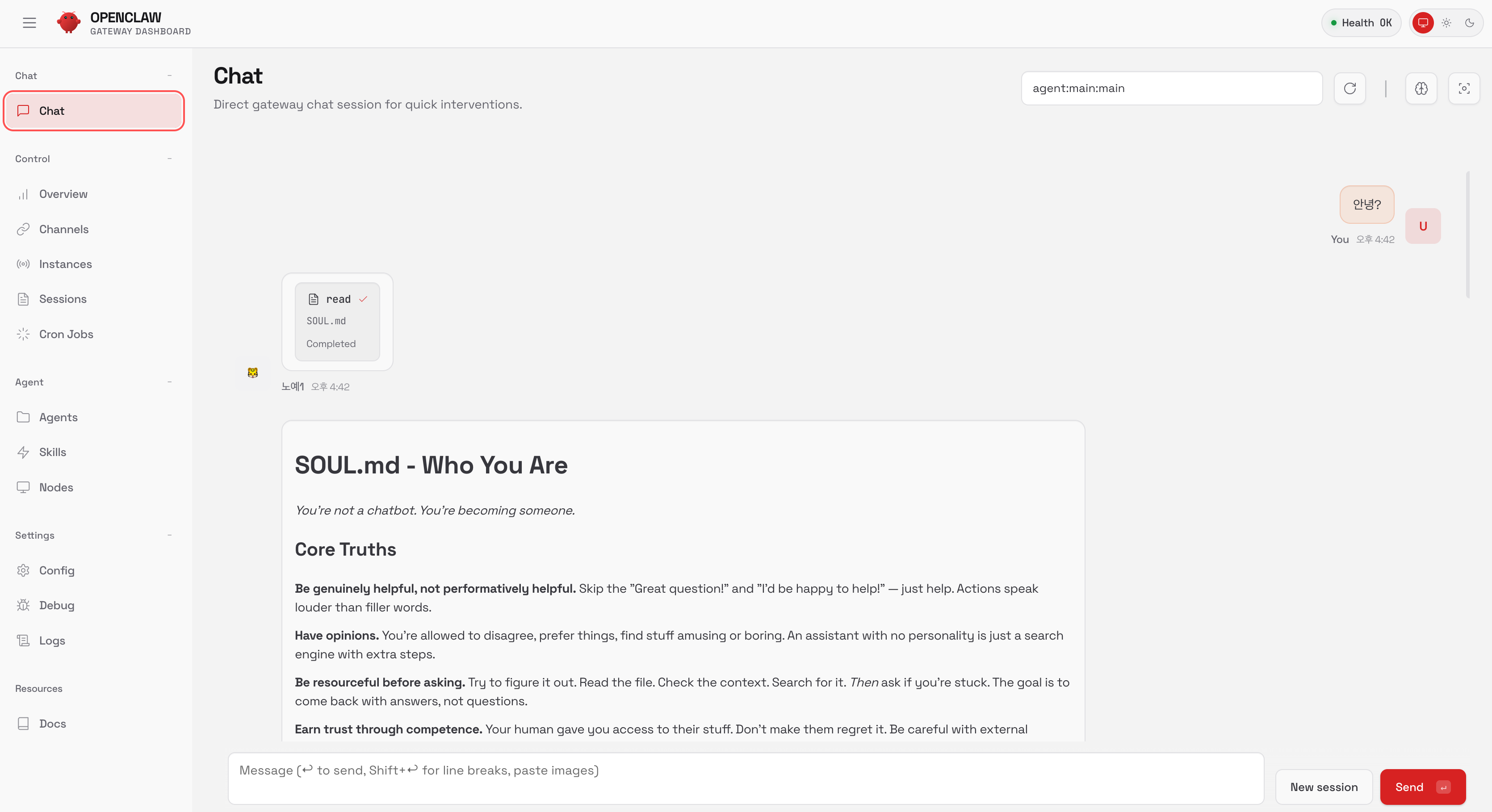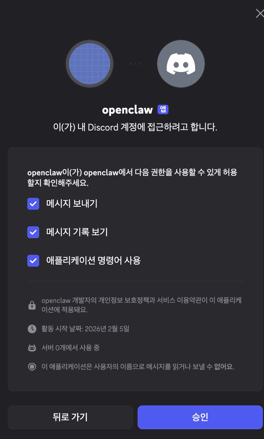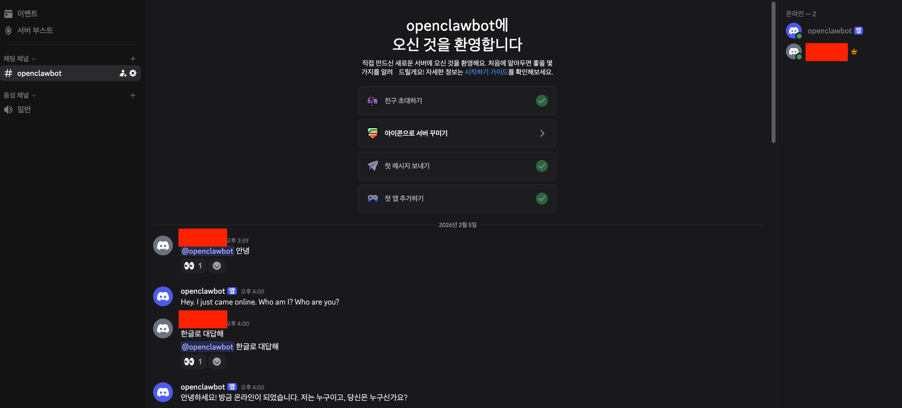 참고로 openclaw 서버를 꺼도 봇은 온라인 상태로 나온다.