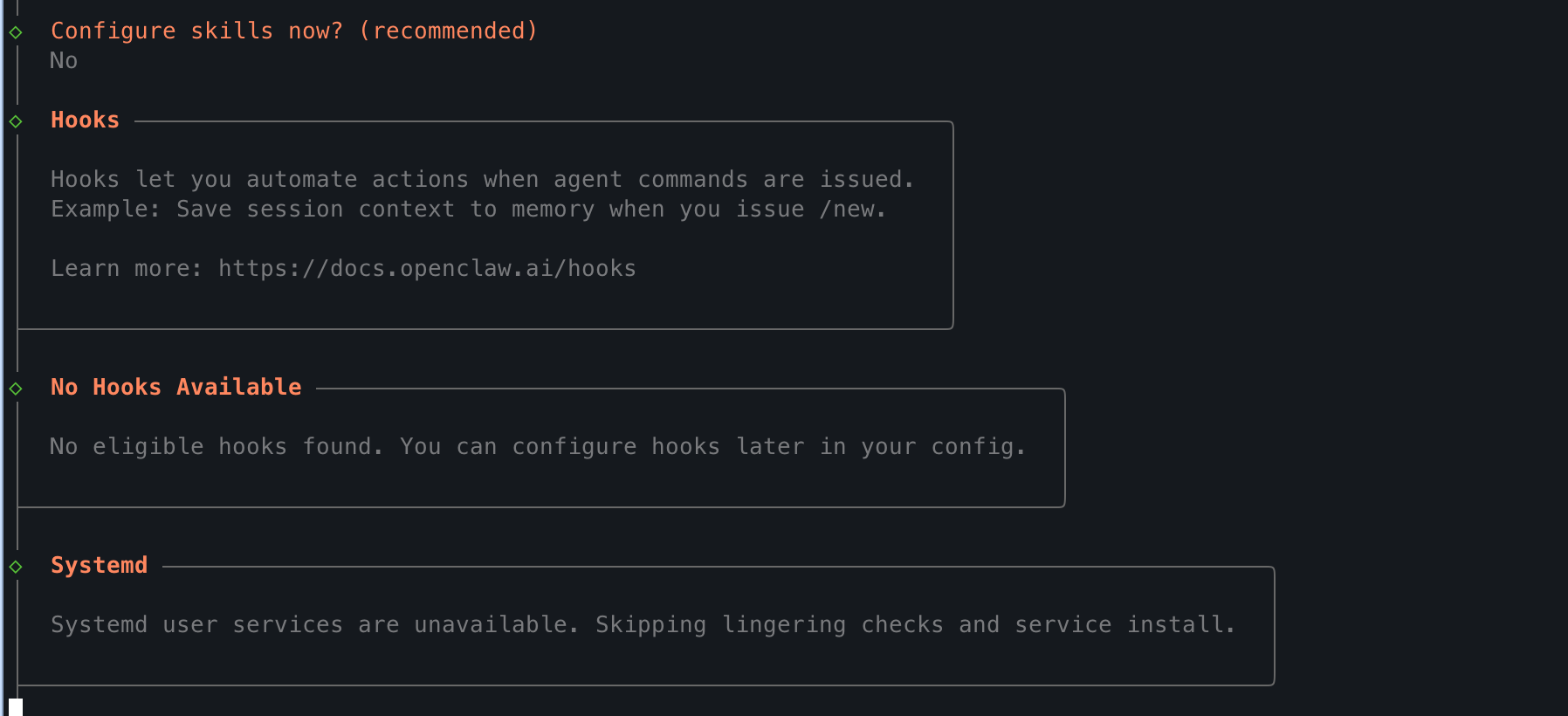 마지막으로 zsh 관련해서 선택옵션이 나오는데 난 docker에 띄워서 터미널은 안쓰기 때문에 No로 진행