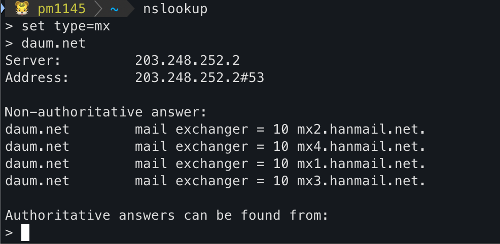 수신자 이메일의 도메인이 daum이라면 daum.net의 mx 서버 정보를 조회했을 때
