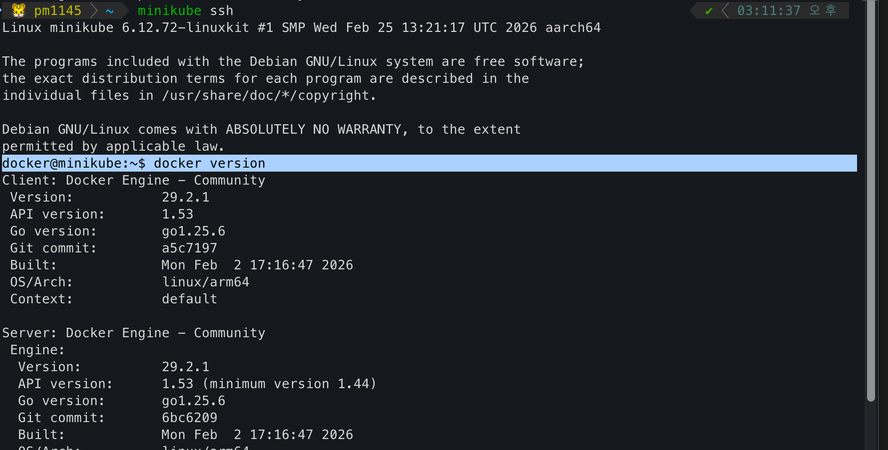 docker version < minikube 내 docker 버전 확인 가능